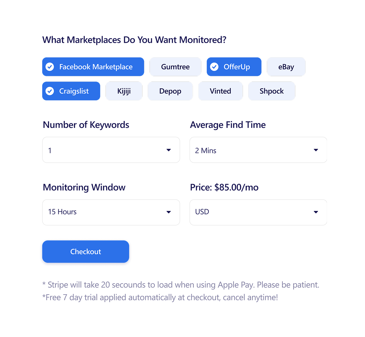 Take the hassle out of car flipping with Marketplace Monitor, your go-to tool for car reselling success. Our platform keeps you ahead by providing instant access to the latest car listings across top marketplaces. With automated searches, you’ll find the best deals faster, giving you more time to focus on maximising profits. Whether you’re flipping cars as a hobby or building a business, Marketplace Monitor makes it simple, efficient, and stress-free. Simplify car flipping with Marketplace Monitor. Get instant access to new listings, automate searches, and maximise car reselling profits easily.